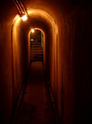 level and straight part of the tunnel, the 3-foot-thick (90cm) concrete walls